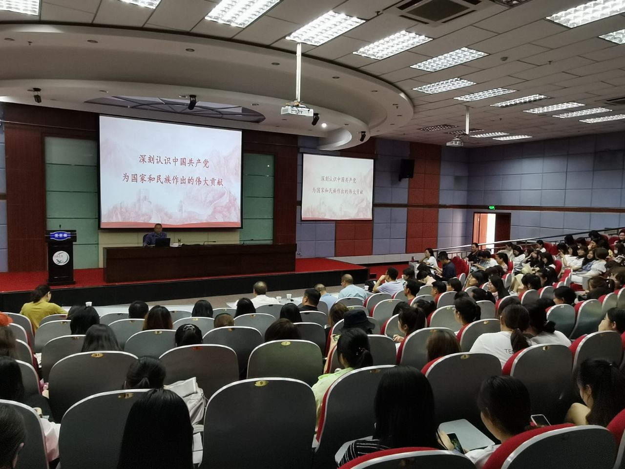 6月9日下午,校党委常委、组织部部长高荣教授为bv伟德国际1946全体师生作了题为《深刻认识中国共产党为国家和民族作出的伟大贡献》党史学习教育宣讲报告,报告会由公司党总支负责人主持,公司党员、师生共200余人聆听了报告。