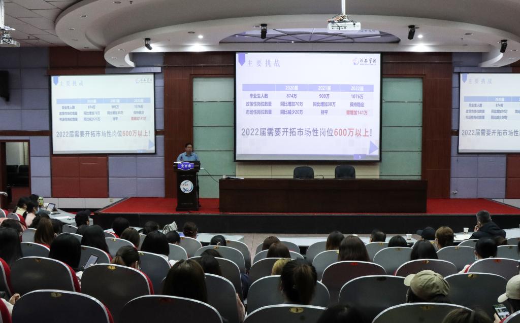 宣讲会上,对就业形势、公司近5年英语、俄语专业毕业生就业情况和2022届毕业生就业意愿进行了精准分析,结合公司毕业生就业数据对本届毕业生就业行动进行了详实盘点和动员。