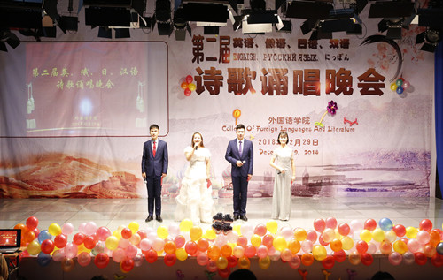 为推动公司外语教学,丰富校园文化生活,12月29日晚公司举办第二届英、俄、日、汉语诗歌诵唱晚会。公司负责人及公司师生200余人欢聚一堂,共享这一视觉上的饕餮盛宴。