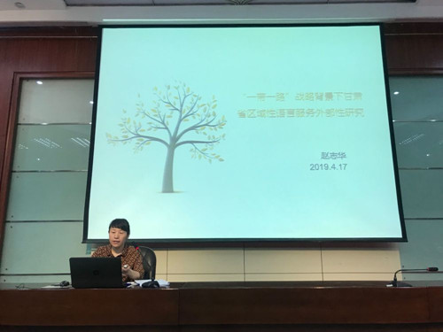 报告会上,赵老师从语言服务的本体研究、对策研究和外部研究谈起,基于问卷调查结果,分析了甘肃省语言服务业和四所高校语言服务人才培养模式的现状、问题与困境,提出了建议与对策。接着就语言服务外部性模式建设进行了讨论,认为甘肃省语言服务业的健康和快速发展离不开行业主管部门有效的监管指导、政府相应的政策保障和高校优质的智力支撑。