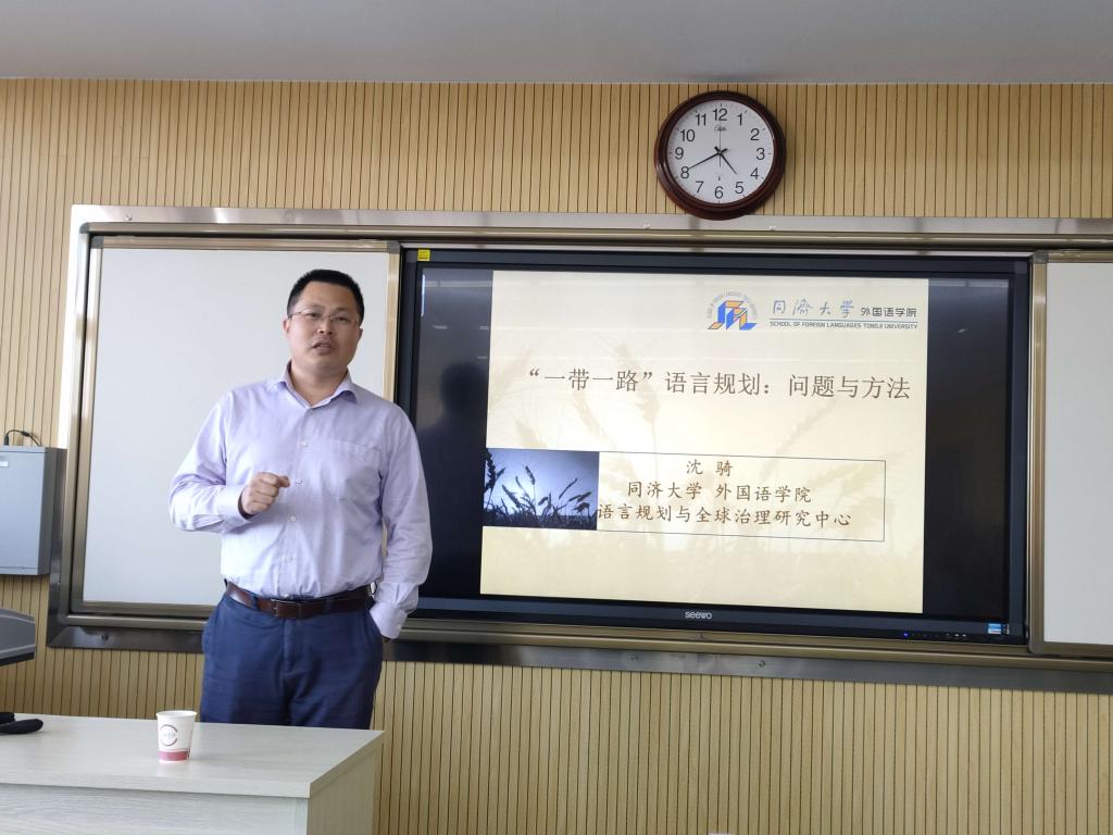 9月20日,应bv伟德国际1946邀请,同济大学博士生导师沈骑教授在教师发展中心905作了题为“一带一路语言规划:问题与方法”的学术报告。报告会由bv伟德国际1946负责人主持,bv伟德国际1946全体教师聆听了此次报告。