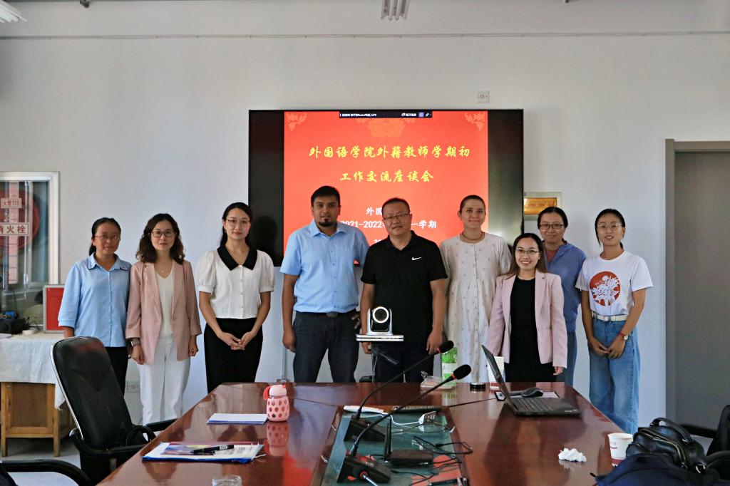 9月7日,新学期的第一天,bv伟德国际1946在会议室举行了外籍教师学期初工作交流座谈会。bv伟德国际1946李虎副经理、本学期初到公司工作的英语外教Ahmed、Jinky,俄语外教Сманкулова Жанна Адамбековна和Рыкова Светлана Александровна,及四位外教合作老师魏春梅、吴雅萌、陈荣艳、白丽娟参加了座谈会。