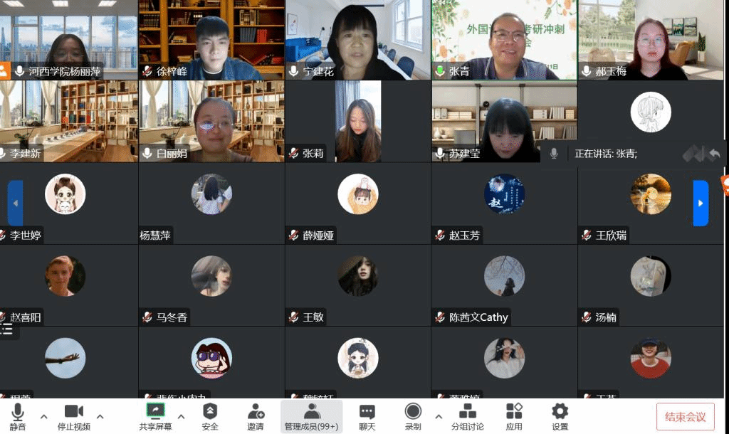 辅导会上,宁建花副教授就外国语言学及应用语言学方向的常考题型、备考策略、心态调整等方面进行了指导;郝玉梅博士就英美文学方向备考的时间规划、复习侧重点等方面进行了讲解;李建新博士聚焦翻译硕士备考,从明晰专业、冲刺重点、发挥瞬间和解答疑问等四个方面进行了分析;白丽娟老师针对俄语方向备考,从决定考研、确定院校后、复习中、考研初试冲刺、国外研究生备考等方面进行了分享;苏建莹老师就学科英语方向的冲刺策略和答题技巧等方面进行了指导。随后,英语174班徐梓峰、英语182班张莉同学从考研的经历经验出发,就23考研冲刺、24考研规划、专业课备考复习重难点、学习资源选择等方面进行了分享,为考研学子详细解答了学习过程的疑难问题。同学们认真聆听,大家积极互动,气氛热烈。