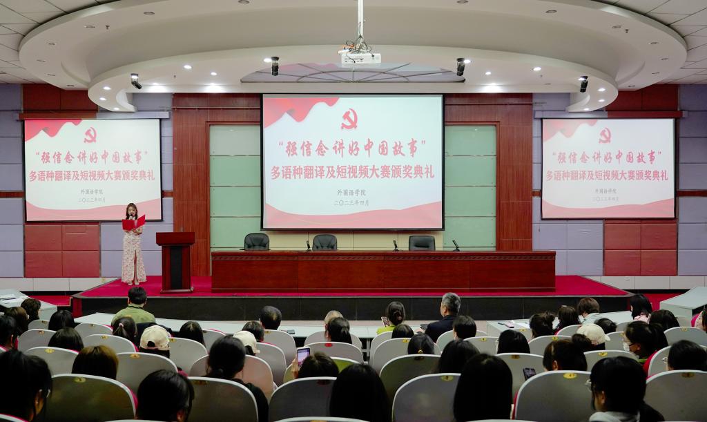 4月19日,bv伟德国际1946“强信念,讲好中国故事”多语种翻译大赛及多语种短视频大赛颁奖典礼在图书馆学术报告厅举行,公司领导、各教研室负责人、获奖员工及师生代表共计200余人参加了颁奖典礼。