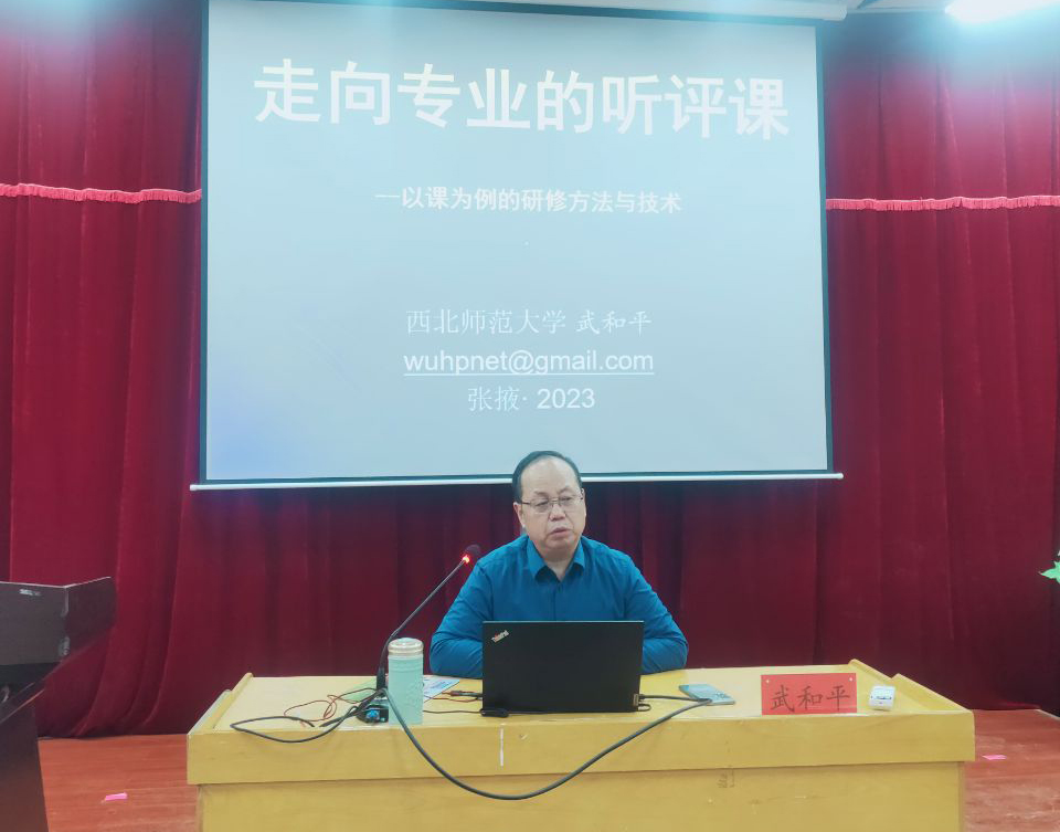 武和平教授围绕什么是课例和课例研究,对课例研修的基本途径、课例研究中存在的问题、课例研究的思维方式转化、课堂观察的程序等多个方面进行了深入浅出的讲解。他指出,在现代化的教育过程中,教师需要不断更新自己的知识,培养教师专业化、科学化的思维方法,才能提高教学水平,才能进行更加专业的听评课。武教授强调听课一定要有所准备,要有团队合作意识,才能做好课例研究。