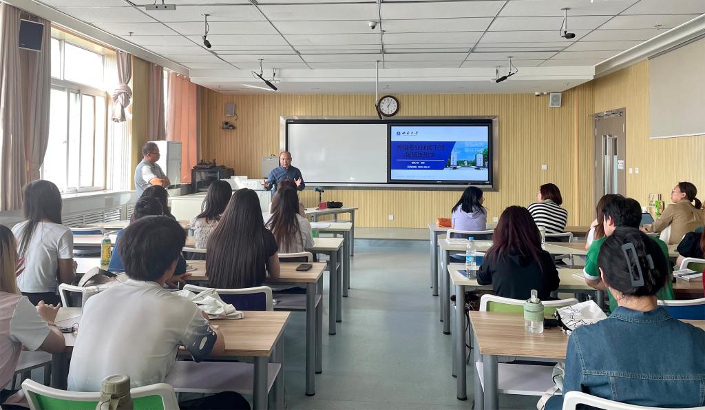 谢周教授作题为“外语专业视阈下的区域国别学”的讲座,俄语专业60余名师生参加了报告会。在报告会上,谢教授详细解读了区域国别学的含义、我国区域国别学的历史与现状、团队建设结构、外语专业与区域国别学研究的优势与短板,认为应立足自身区位、“一带一路”政策优势,达到学术研究、人才培养、智库工作“三位一体”的中国特色区域国别研究。