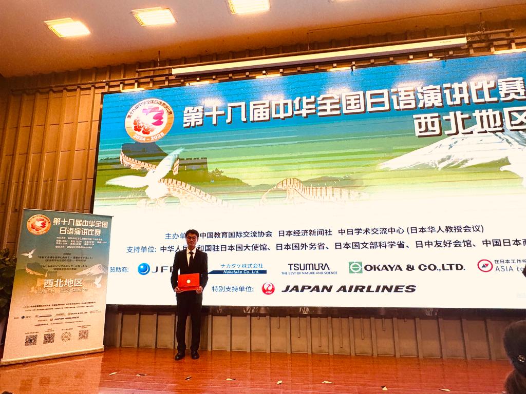 12月15日,公司23级员工王冠祥在西安外国语大学举行的“第十八届中华全国日语演讲大赛”西北赛区决赛中获得三等奖。该赛事是迄今参加人数最多影响力最大的日语赛事,此次公司员工第一次参加该比赛,与来自西安交通大学、陕西师范大学、西北大学、长安大学、西安外国语大学、新疆大学、兰州大学等西北28所高校的日语专业员工同组竞赛,并荣获奖项。