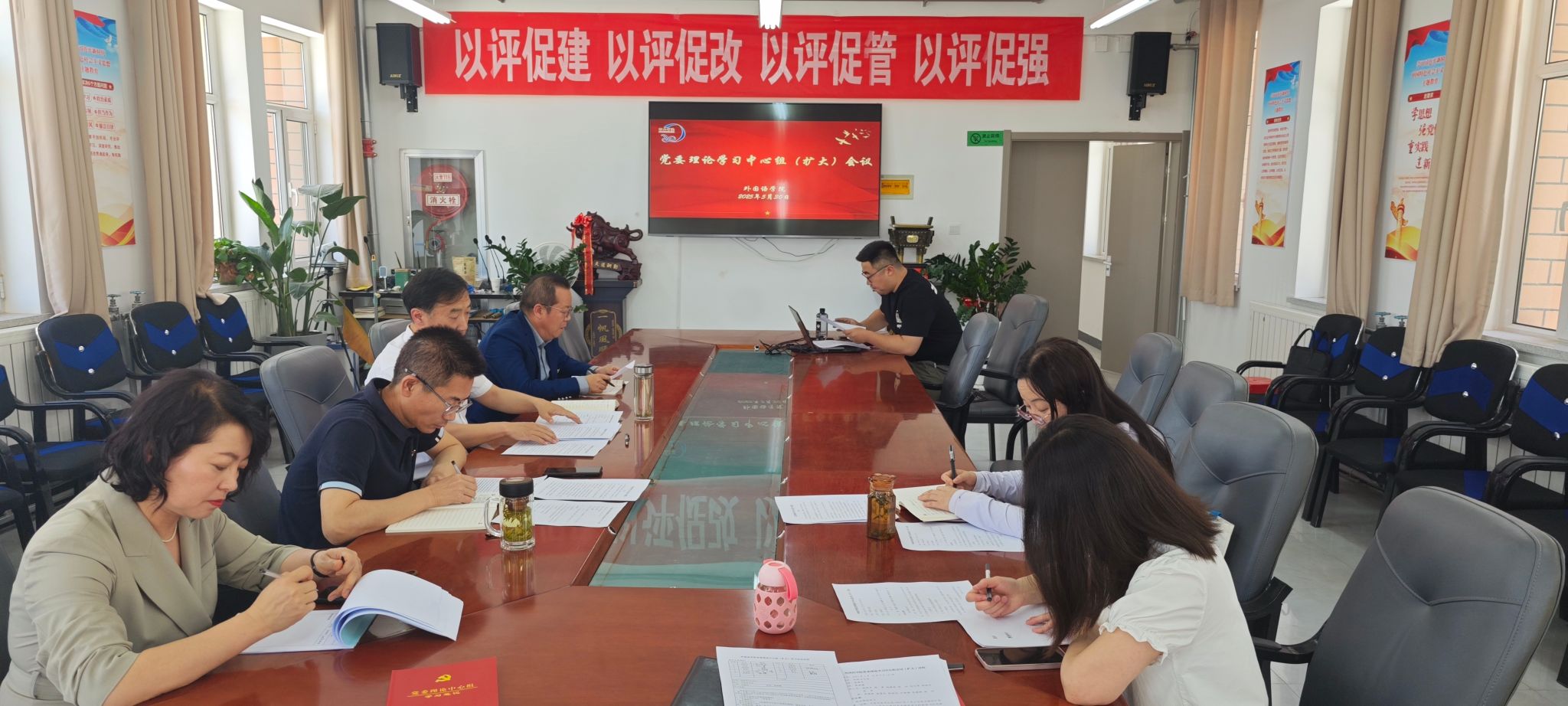 5月30日,公司召开党委理论学习中心组(扩大)学习会议,公司党委理论学习中心组成员参加集体学习,各教研室主任、辅导员列席会议。